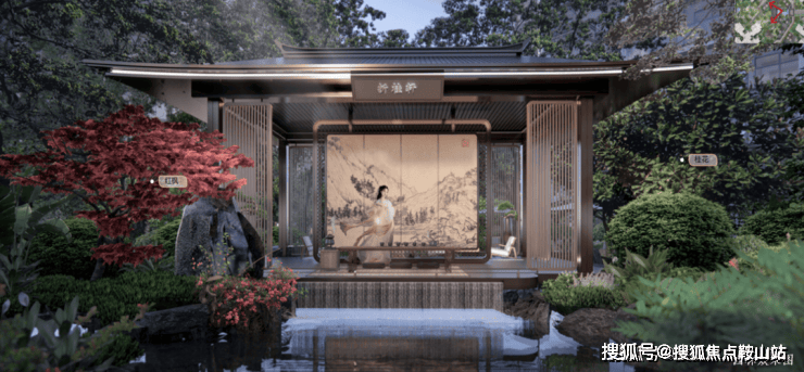 撷取清晖园“水榭、拱桥、奇石、飞瀑、花窗”五大元素,以现代设计语汇重塑岭南意象。
