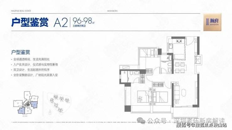 【建筑面积96-98㎡3房2卫】