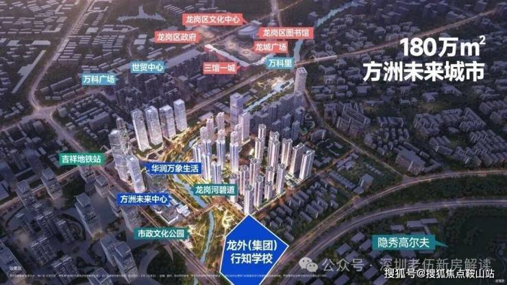 周边配置三馆一城、城市规划展厅、龙岗区大剧院、龙岗区文化馆,等城市资源。是集行政中心、文化中心、高端商务中心、潮流商业中心于一体的湾区东部CBD。