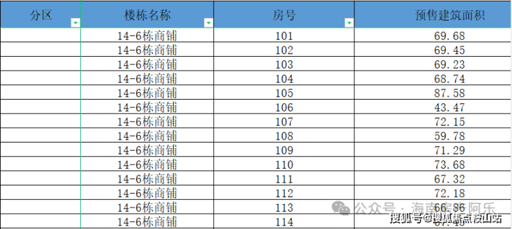 14-6#号楼14套(面积43.47㎡-87.58㎡)