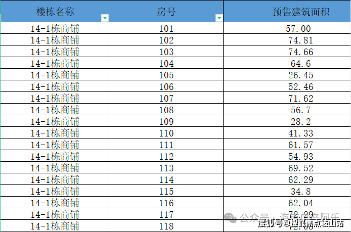 14-1#号楼18套(面积28.2㎡-74.81㎡)