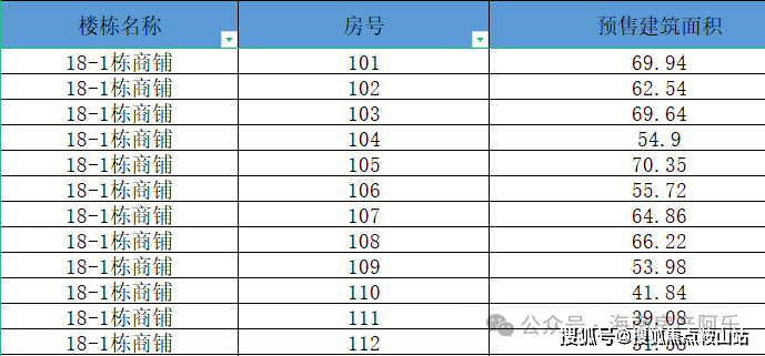 18-1#号楼13套(面积31.58㎡-70.35㎡)