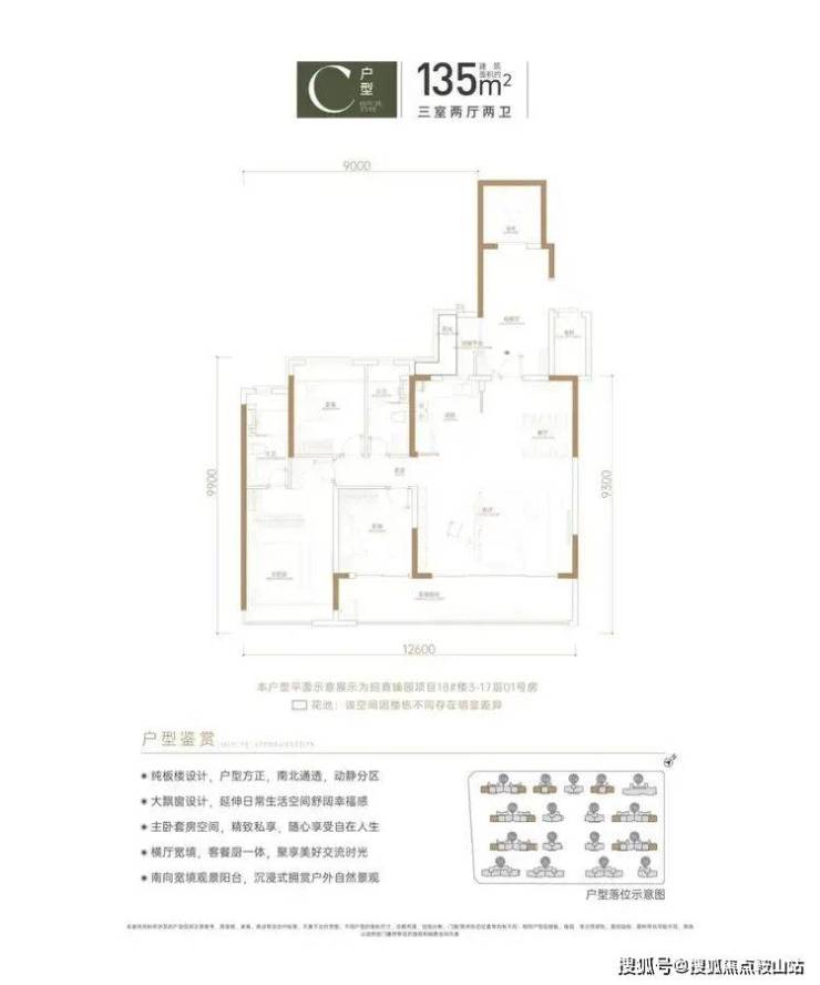 建筑面积约135㎡的3房2厅2卫