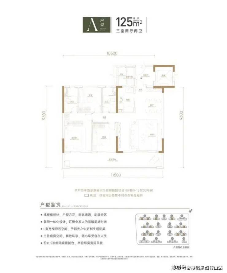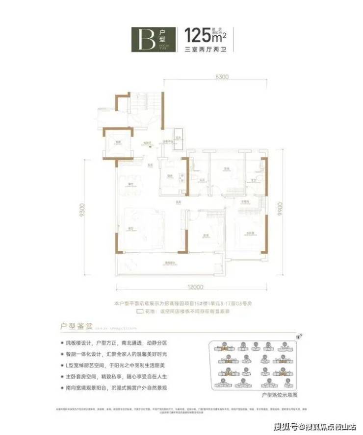 建筑面积约125㎡的3房2厅2卫