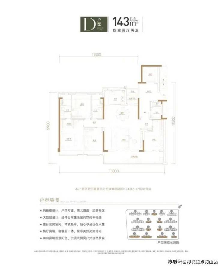 建筑面积约143㎡的4房2厅2卫
