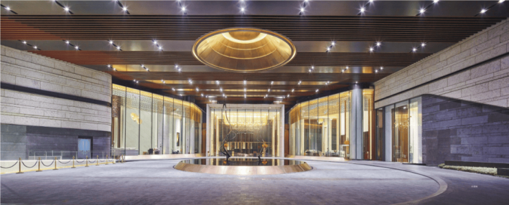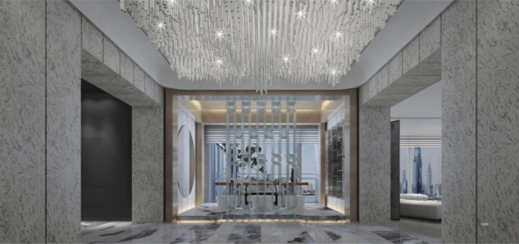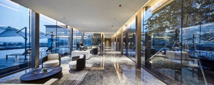 【细节-匠心造就极致】9m通高的半室外阔绰落客区,12.5m挑高、面积约1200㎡的奢华大堂,宽幅达4mIMAX巨幕观景玻璃