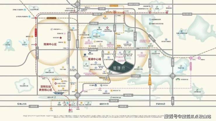 鹏瑞鹭璟府,位于龙华区观湖街道五和大道与澜清一路交汇处,地处鹭湖新城核心板块,紧邻观澜高新园区。该片区被定位为“科技行政文化核”,与深圳北站商务区共同构成龙华区“双核中心”,是龙华区打造“数字龙华,都市核心”的重要载体。