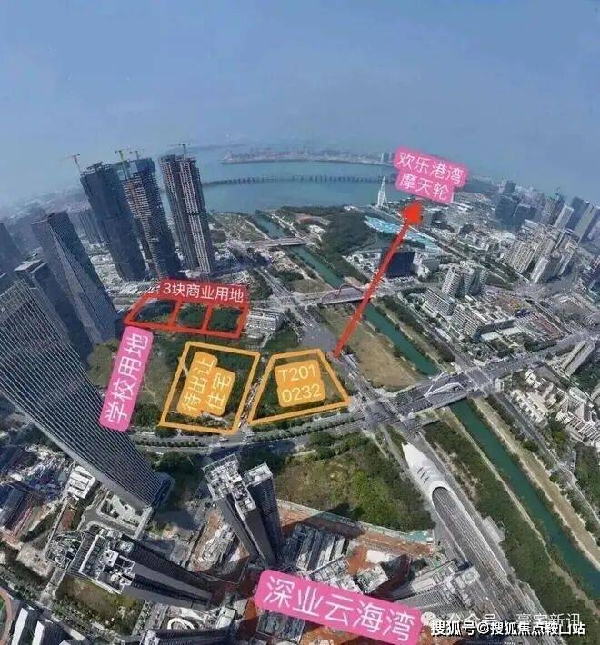 地块紧挨深业前海湾、天健悦桂府,与宝中仅隔着一条双界河,直线距离 1.1 公里外就是前海湾和欢乐港湾摩天轮,开窗即见 “湾区风景线”!
