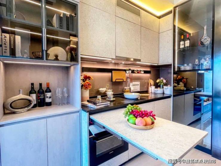 开放式的厨房设计,增设了一张可收折的小餐台,方便备餐及用膳,或者你在家工作都没问题!