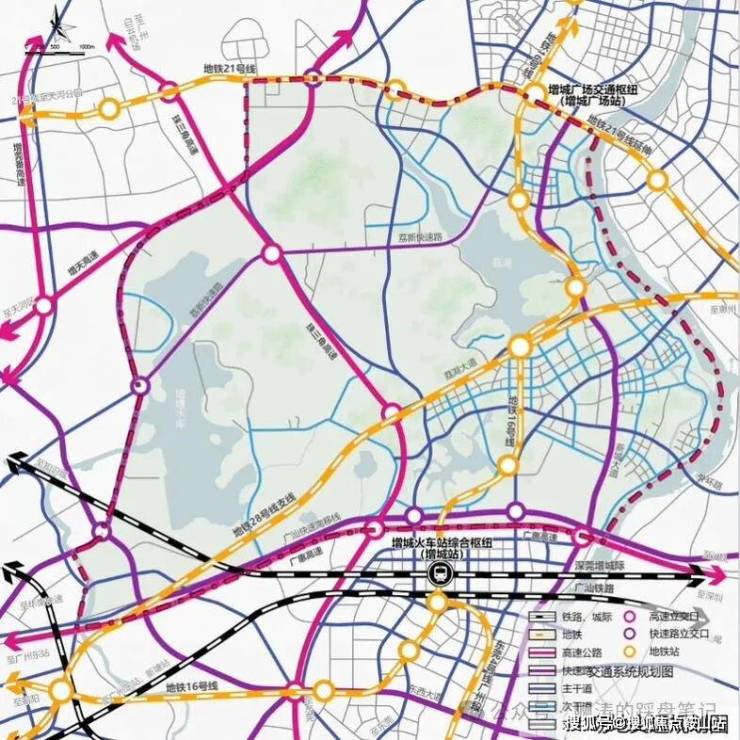 其中毗邻16号线与28号线枢纽——荔湖新城(规划中)地铁站,双地铁口; 多维立体交通环伺,繁华无界延伸。