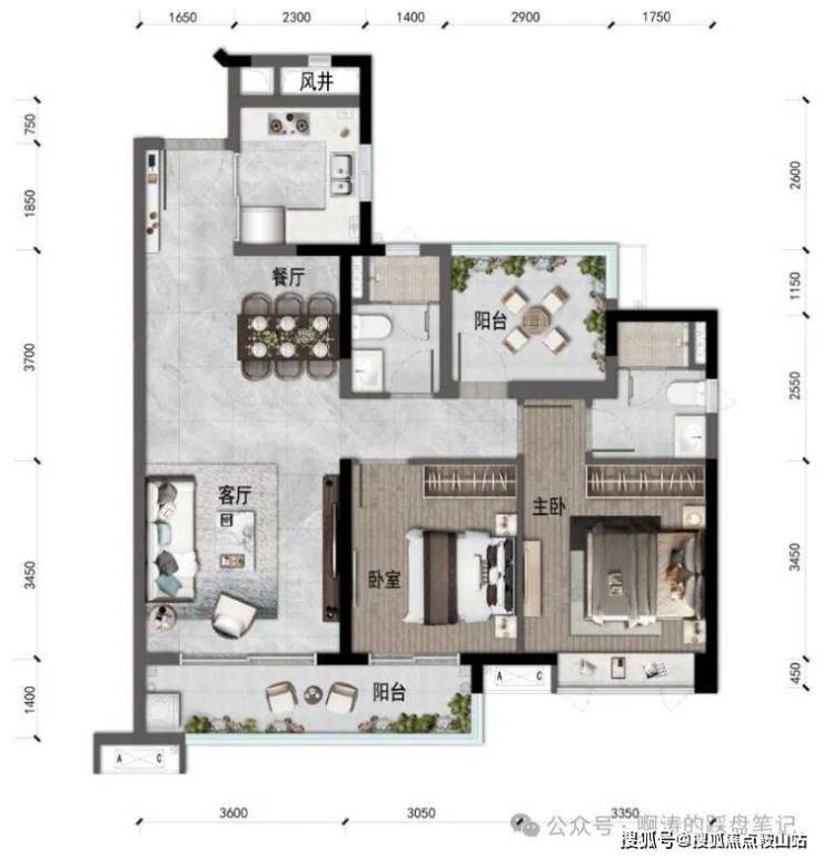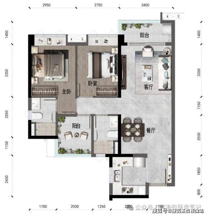 3.客厅与餐厅采用一体化设计,纵向巨幅场域;