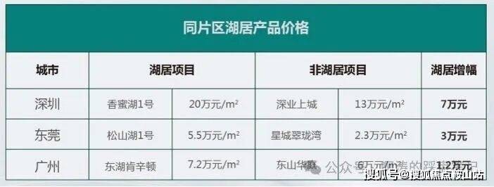 湖畔高档住宅,湖景景观面开阔,作用区域内最具标志升值潜力。对标深圳香蜜湖、东莞松山湖和广州越秀东山湖,临湖住宅市价远高于周边,“板块价格天花板“名副其实。