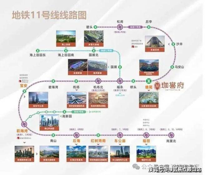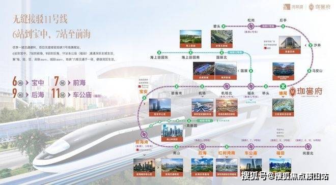 鸿荣源珈誉府位于宝安大道与凤塘大道交汇处,地处沙井核心区域。项目最大的亮点之一是与地铁11号线塘尾站无缝接驳,真正实现了地铁上盖物业的便利。从项目出发,6站可达宝安中心,7站直达前海,9站到后海,11站即达车公庙,对于在南山、福田工作的通勤族来说,位置相当便捷。
