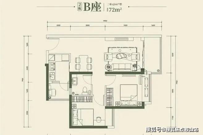 72-74平方米2房2厅1卫:适合年轻夫妇或单身贵族居住,空间布局合理,采光通风良好。