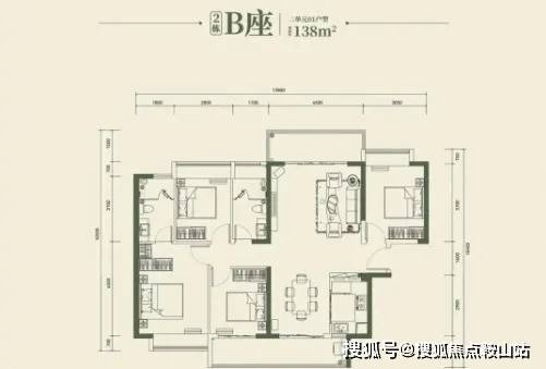 137-138平方米4房2厅2卫:适合大家庭或改善型需求客户,宽敞明亮,尊贵舒适。