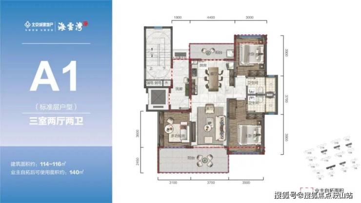 ⭕标准洋房产品(A1、A2):105-117㎡演绎大面宽短进深的经典格局 三室两厅悦享方正宜居,品鉴自贸港粹美生活