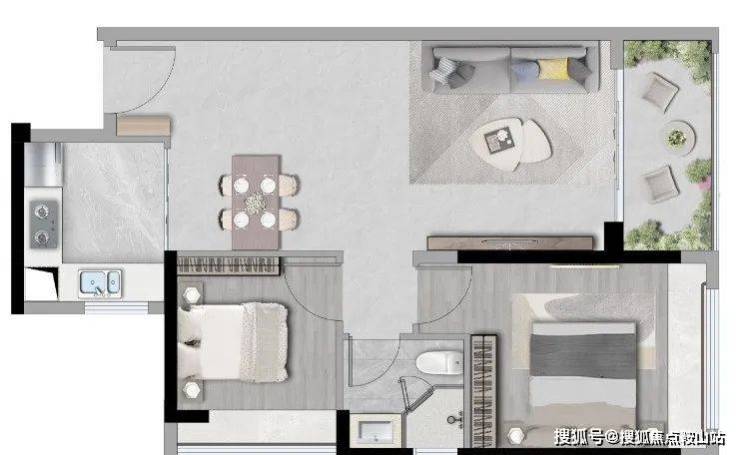【72㎡2房2厅1卫】高实用空间,动静分区科学布局全屋优越采光,推窗即揽诗意山景餐客一体,连通阳台 延伸幸福尺度L型厨房,动线流畅让烹饪更自在。