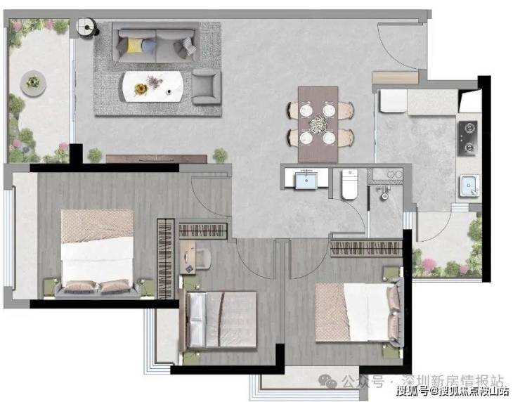 【88㎡3房2厅1卫】高实用空间:动静分明 生活井然有序L型厨房:动线流畅 让烹饪更自在客餐厨直连:通透无界 全家欢愉的生活场双阳台设计:辽阔视野纳藏无限风光。