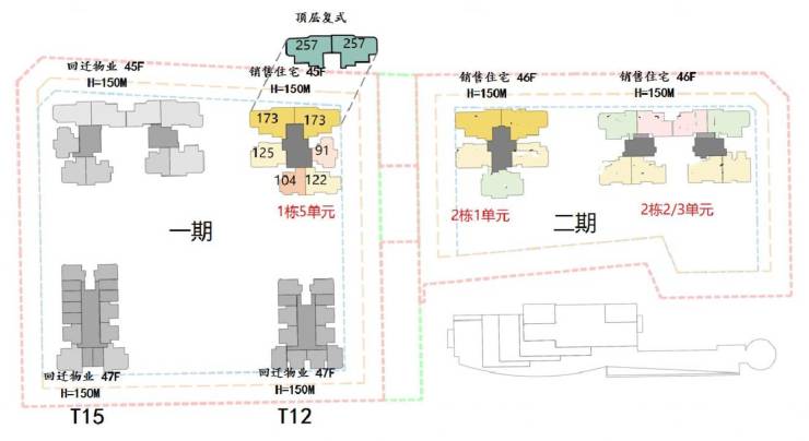 社区规模:5栋建筑,商品房723套+回迁房1428套,车位1987个