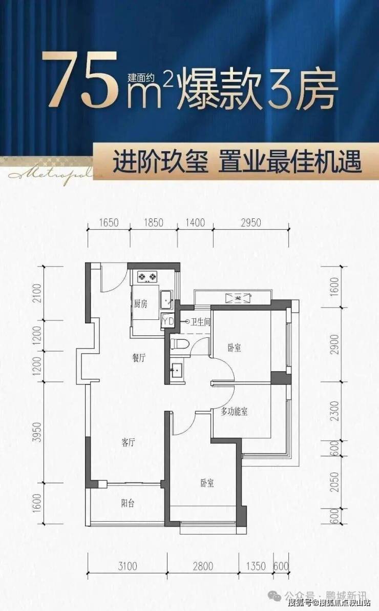 【12栋——首开景观楼王,3梯5户,四房首推劲销9成,居住舒适度超高】建面约75-97㎡全能三房