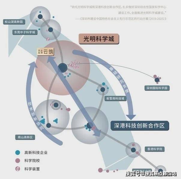 光明南接深圳南山科技园,北联东莞松山湖,向上链接东莞水乡新城和广州大学城,是粤港澳大湾区的重要战略节点,占据中国科创发展大动脉;汇聚中山大学深圳校区、国家超算中心等世界一流科创资源,打造世界一流科学城。