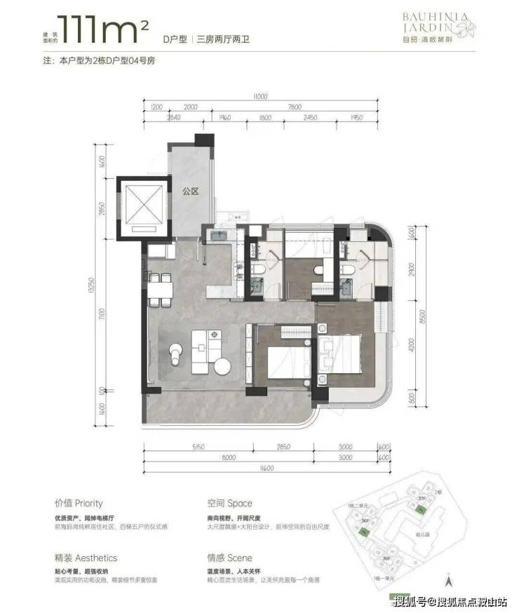 湾啟紫荆府推出的 96--111-122-142㎡三至四房,几乎覆盖了刚需到改善的所有需求,而且每款户型都有让人惊喜的设计。项目专梯入户、使用率近100%,折后优惠8.8万/㎡起,96-142㎡三至四房,