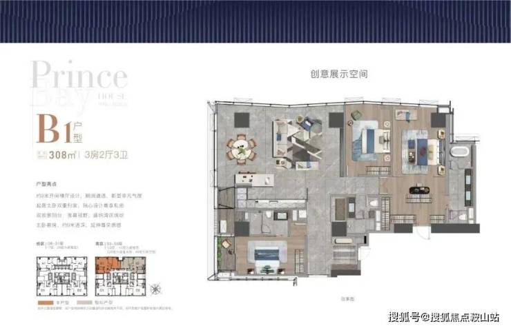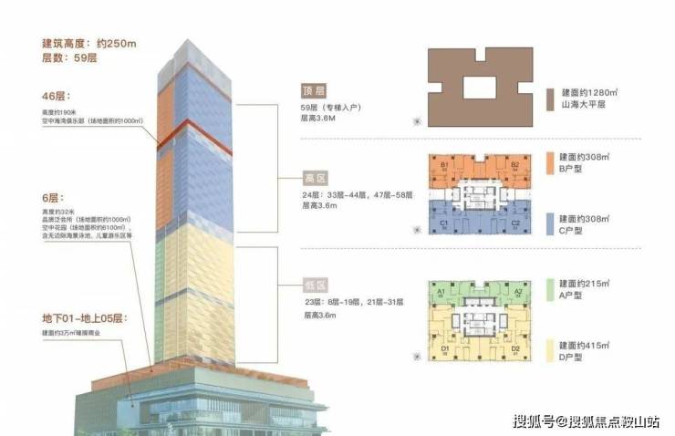 大平面大尺度定位,层高约3.6米,横厅设计确保最大化观景面,全户型纵享环幕视野。项目打造主力建面约215-415㎡纯粹品质公寓共191席,顶层为建面约1270㎡公寓产品。