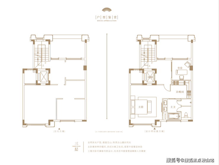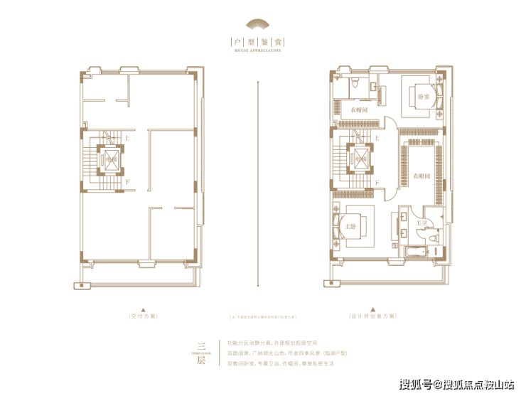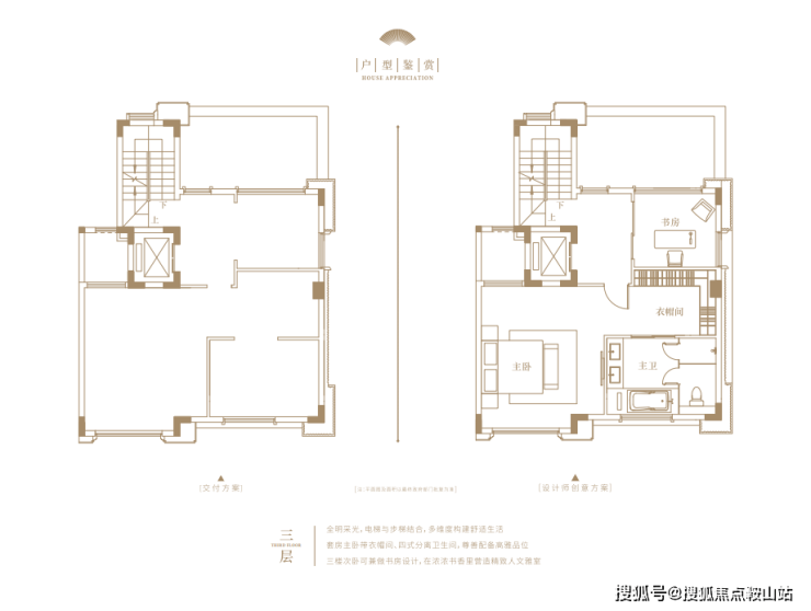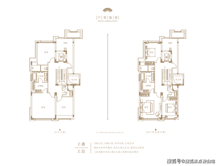 建面约240㎡的上叠户型,可独立入户,首层是独立会客厅与长辈房,二层则是三间卧室。