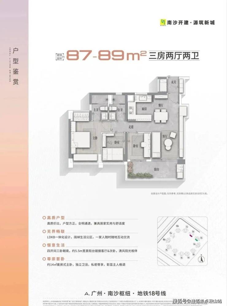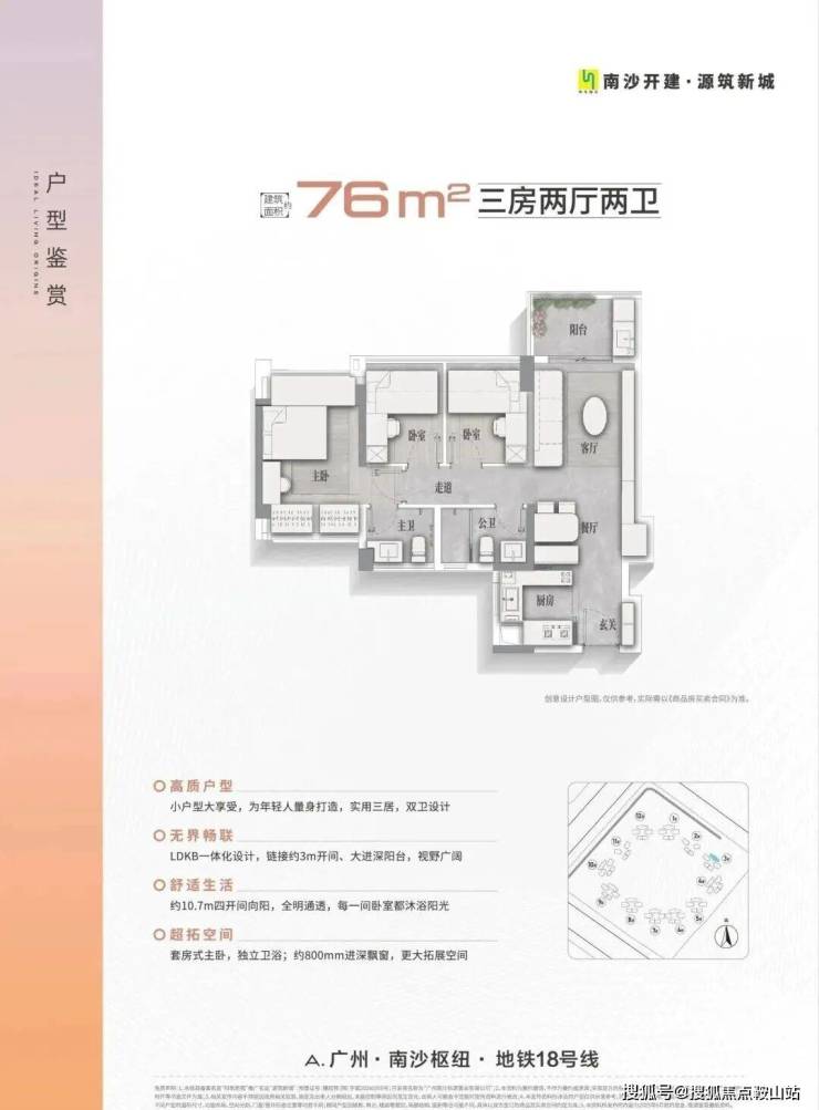 项目占地面积约18万㎡,总建筑面积约62万㎡,整体以“悦享配套、产城融合”为核心规划理念,建设22栋住宅、大型生活街区及综合商业配套,优享从幼儿园至中学一站式公立教育资源,周边医疗资源环伺,拥有南沙最齐全生活配套,结合板块“枢纽带动、多点支撑、整体协同”的优势,倾力筑就悦享生活、湾区未来的美好人居样板。