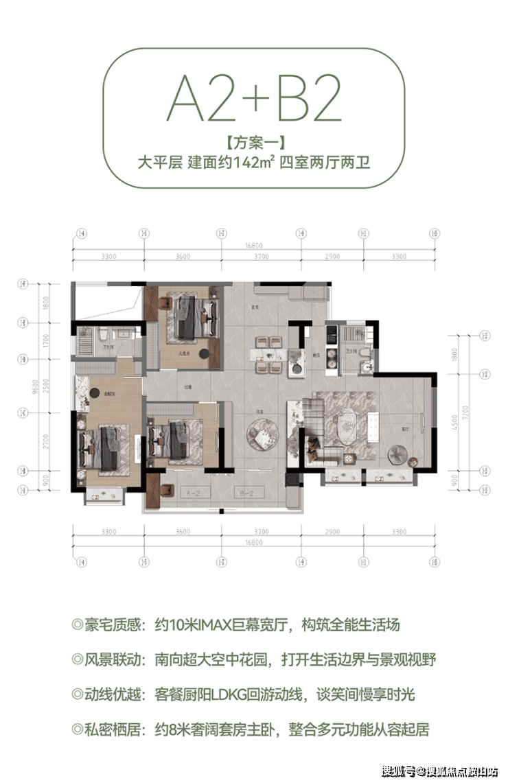 具体来说,A-2户型(建面约60㎡)以独立入户花园和客餐厨一体化设计,打造宜居范本;B-2户型(建面约84㎡)则通过通透宽厅和观景阳台,让阳光清风入室做伴;B3奢阔大平层(建面约89㎡)以高得房率和阔绰宽境,提升居住品质;A-2+B-2大平层(建面约142㎡)则通过豪宅质感和私密有序的设计,满足家庭成员的多元需求;而B-3+B-3空中微墅(建面约178㎡)更是以人性规划和品质宜居的设计理念,打造出一处尊贵的居住空间。