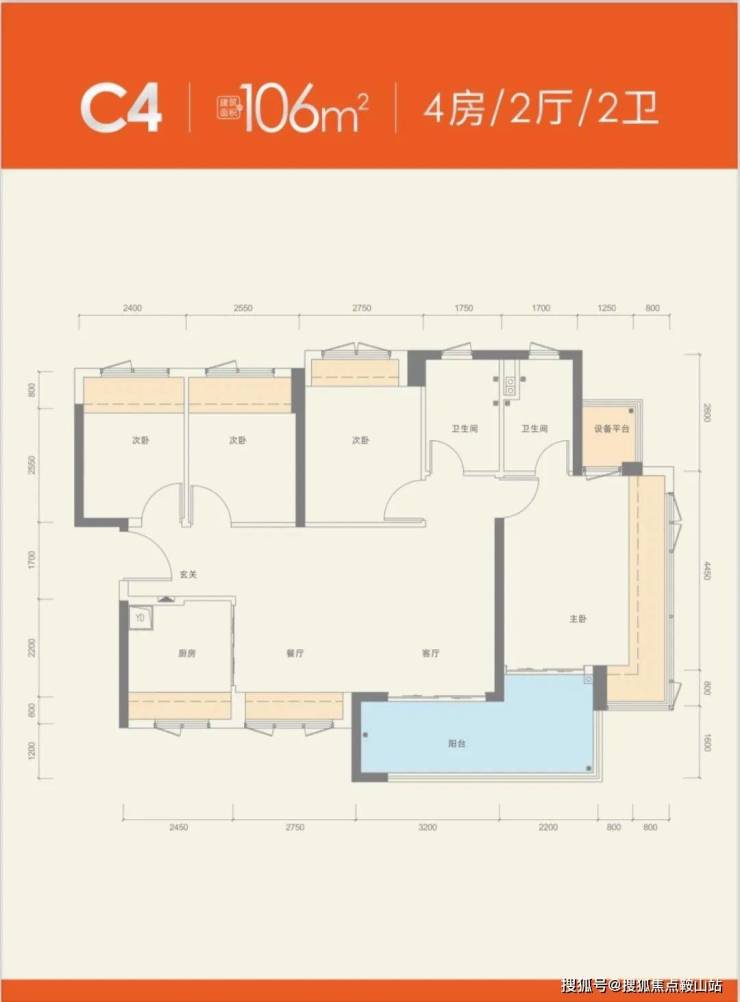 产品面积:建面约76-106㎡三至四房