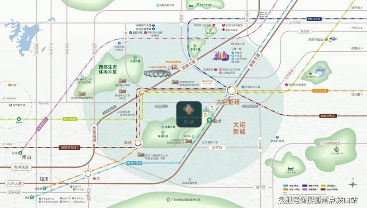 乐宸择址大运新城,以擎动东部的时代坐标之姿,立序湾东智芯。大运新城又定义为大运深港国际科教城,与前海、深圳湾、香蜜湖等区域并称深圳六大城市新客厅,汇聚东部最大综合交通枢纽。