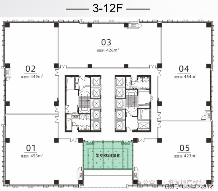 开敞式电梯厅设计,全天持续采光通风,安心健康绿色办公,会呼吸的电梯厅!