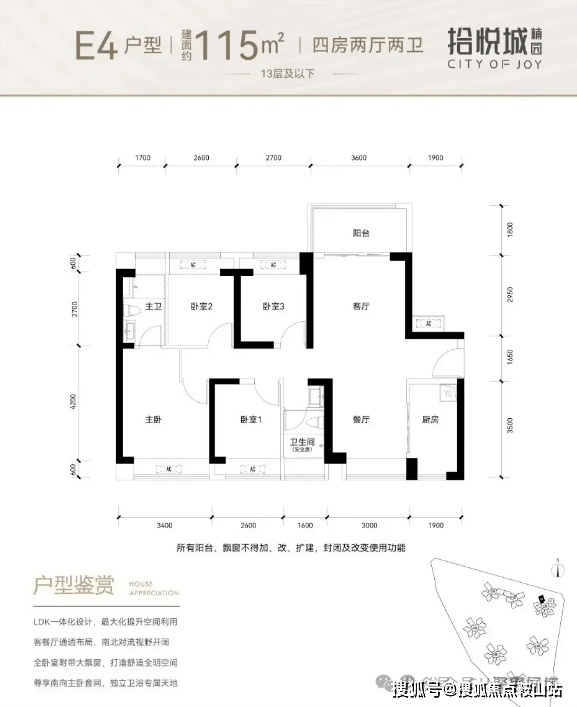 其中115㎡与126㎡外形结构与内部功能间布局基本一致,126㎡户型可看作是115㎡户型的放大版,都是竖厅、动静分区的,居住舒适性、实用性、通透性、静溢性各方面都比较好。
