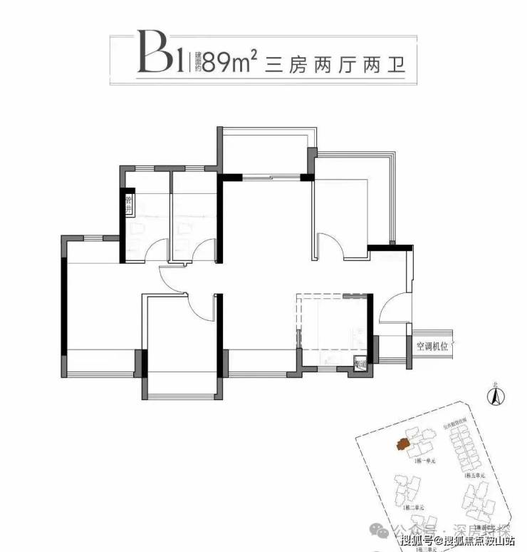 从流出的户型图可以看出,预计首推一期的1栋1单元,产品面积约89-112㎡ 3-4房,具体尺寸数据还没出,新规得房率还是值得期待的。其中89㎡ 3房2厅A1户型为常规经典竖厅,主卧有270度大飘窗