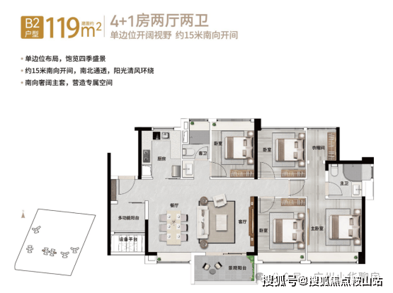 ❗119㎡4+1房2厅2卫(横厅)❗💎轻奢四房再送一房💎改善换房必选———————————————【119㎡4+1房2厅2卫(带主套)】单边位布局,15米南向开间,南北通透南向奢阔主套,配独立衣帽间改善户型首选,低总价换房天河(此价格未能实时更新,以现场实际可售房源价格为准)