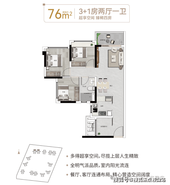 ❗76㎡3+1房2厅1卫❗💎同等面积多一房,天河稀缺小户型💎视野开阔无遮挡,望自然山景———————————————【76㎡3+1房2厅1卫】餐厅、客厅连通布局低总价晋阶天河(此价格未能实时更新,以现场实际可售房源价格为准)