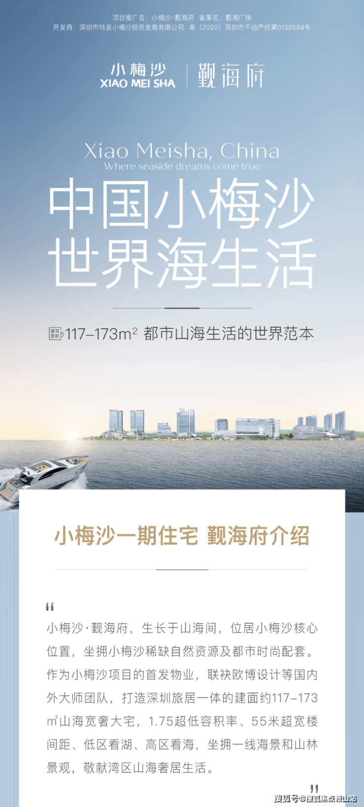 深圳小梅沙觐海府(别名:特发小梅沙觐海广场)是深圳市特发小梅沙投资发展有限公司开发的楼盘,位于盐田区核心地带,紧邻海岸线小梅沙觐海府 售楼处 | 预约看房专线:400-832-8772