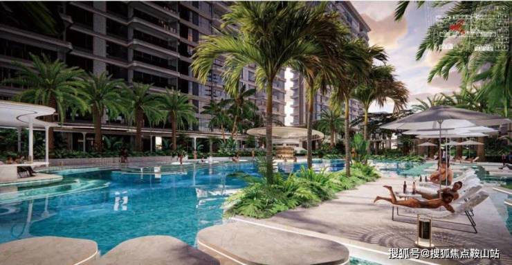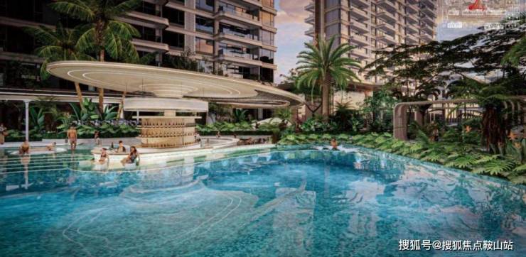 2600㎡海南最大社区无边界星光泳池,配备有成人池、儿童池、造浪池、泡池spa、水中吧台。