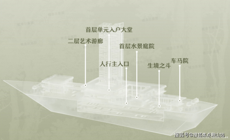首层谧邸之厅:采用围合式庭院设计,阔绰车马院与酒店式落客区以从容礼序迎接归家,营造出私密而尊贵的入户体验。