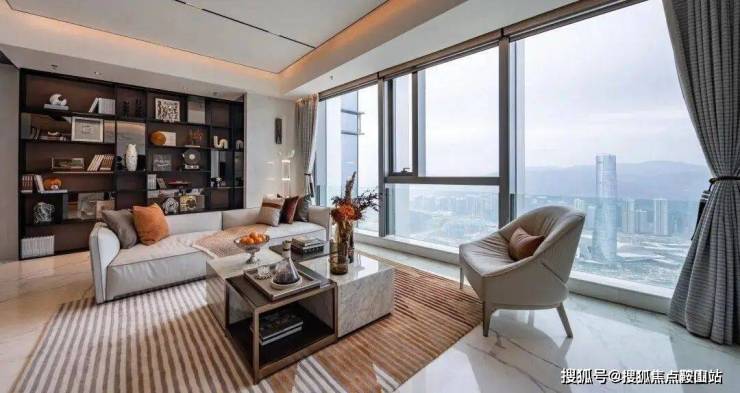 The interior design of IFC Qinao Bay No. 1 is led by Li Weimin Architects. The overall design integrates the essence of Chinese and Western culture, combines art, taste and fashion, and vividly explains the life of the peak floor of the bay core from an aesthetic point of view.