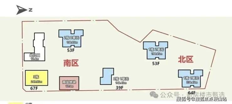 1栋公寓250米,4栋住宅分别150米、200米、200米、240米。层高3.3米,约40-70层(不含底商)