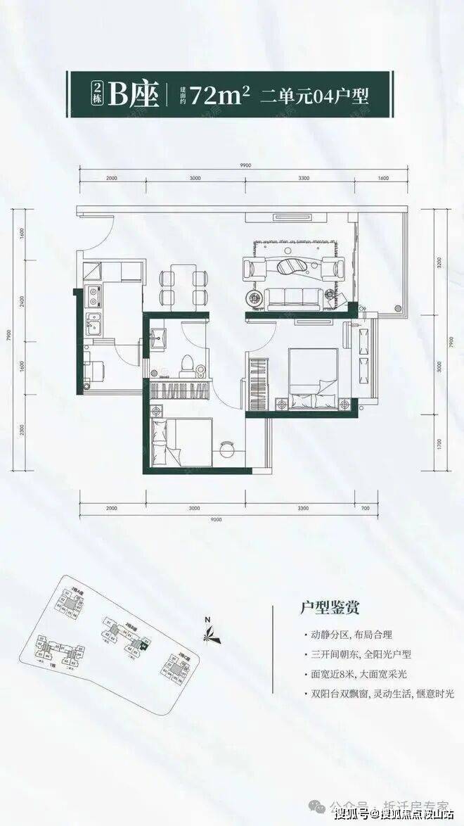 户型简介双阳台,全阳光户型