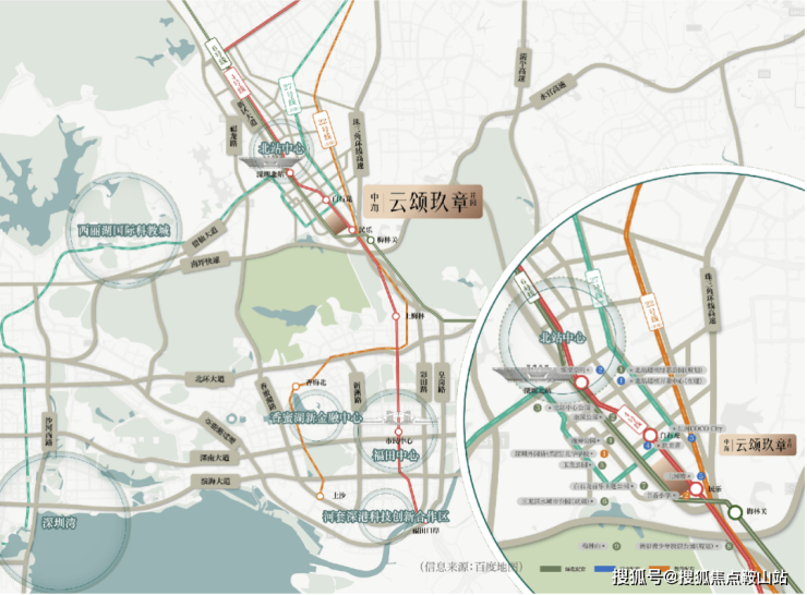 项目位于深圳龙华区民治街道新区大道与金龙路交汇处东南侧,地处梅林关门户位置,也是龙华区新增的七大重点片区之一,该片区定位为"大湾区数字经济核心引领区、数字科创先锋示范区",是深圳中轴线上的战略要地。项目周边群山环绕,生态价值优越,距离玉龙滨水主题公园、星河雅宝山体公园等城市公园仅数百米,形成了"城在山中、山在城中"的生态格局。作为福田后花园,项目既享受都市核心区的便利,又拥有优于福田的生态景观,实现了城市繁华与自然生态的完美平衡。