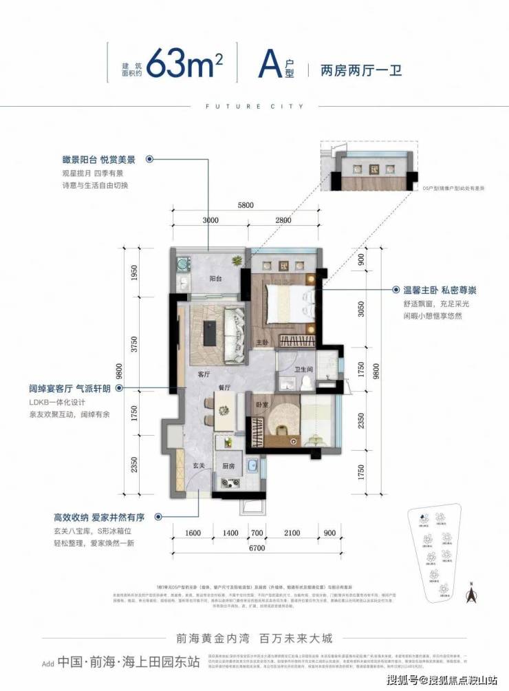 63㎡2房1卫:总价216-223万/套,单价3.4-3.5万/㎡;