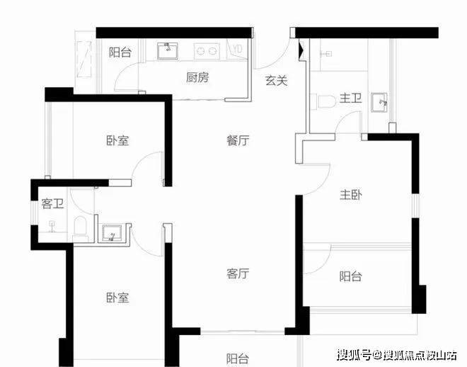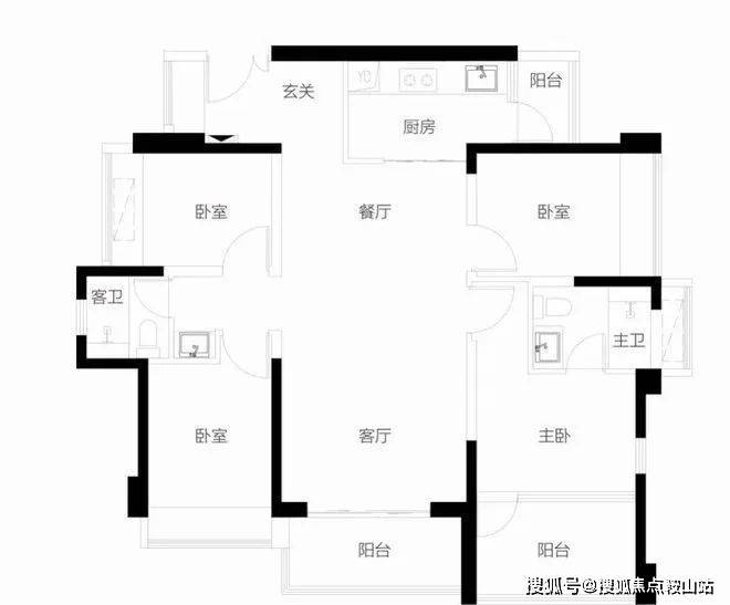 客厅朝西带阳台,2房朝西,1房朝南,1房朝北 单价区间:7.5-7.7万 总价区间:885万-910万