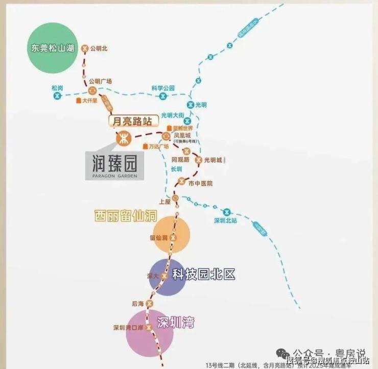 项目家门口是主干道松白路,自驾半小时可达南山,周边还有南光高速、龙大高速、深圳外环高速等交通要道,13号地铁线”月亮路站“距离约300米,目前还在建设当中,预计在2025年底-2026年初开通运营,1站直达凤凰城换乘6号线,3站至光明城高铁站,未来通过13号线可快速连接南山科技园、后海总部等核心区域,未来该线路将延伸至东莞松山湖,并接驳29号线(规划中),形成大湾区黄金轴线。
