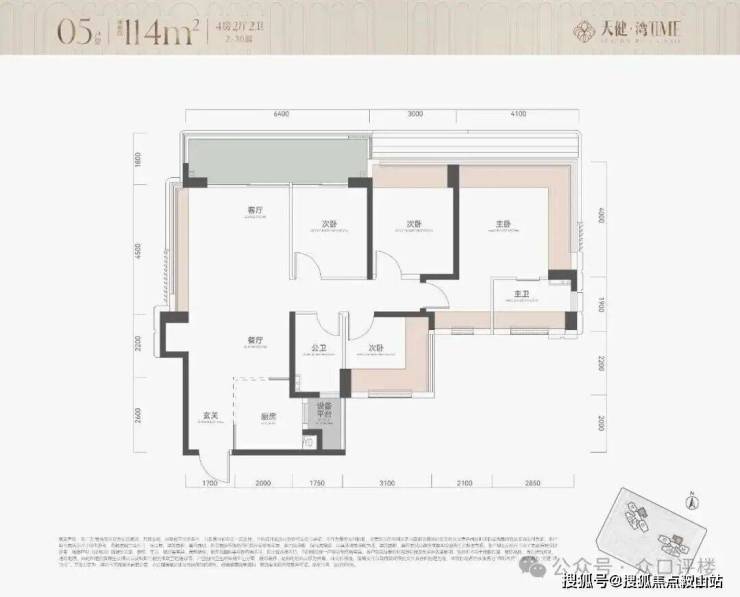 户型为113㎡四房114四房和139㎡五房约290套,2栋100米内30层住宅,2梯5户,其中主力为113㎡四房,整体以朝南及西南为主,有两套朝东北面向金众。