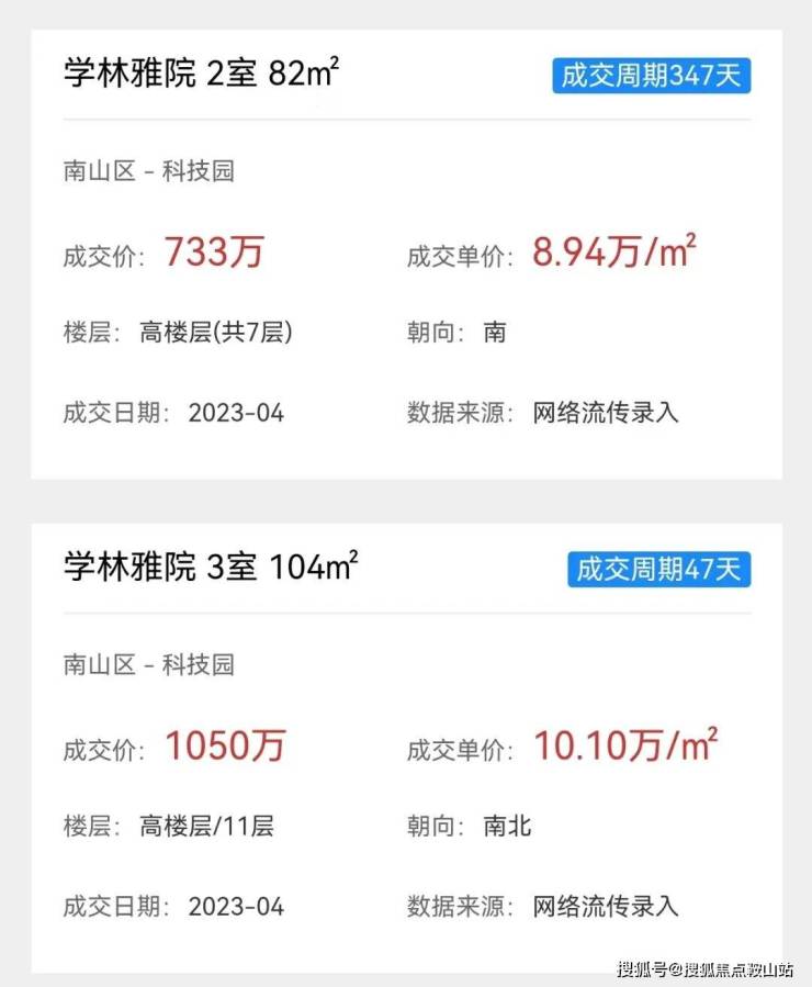 学林雅院的业主挂牌单价普遍在9万/平左右,历史成交单价在8.94-10.1万/平,22年高峰时期成交单价去到了11万/平。