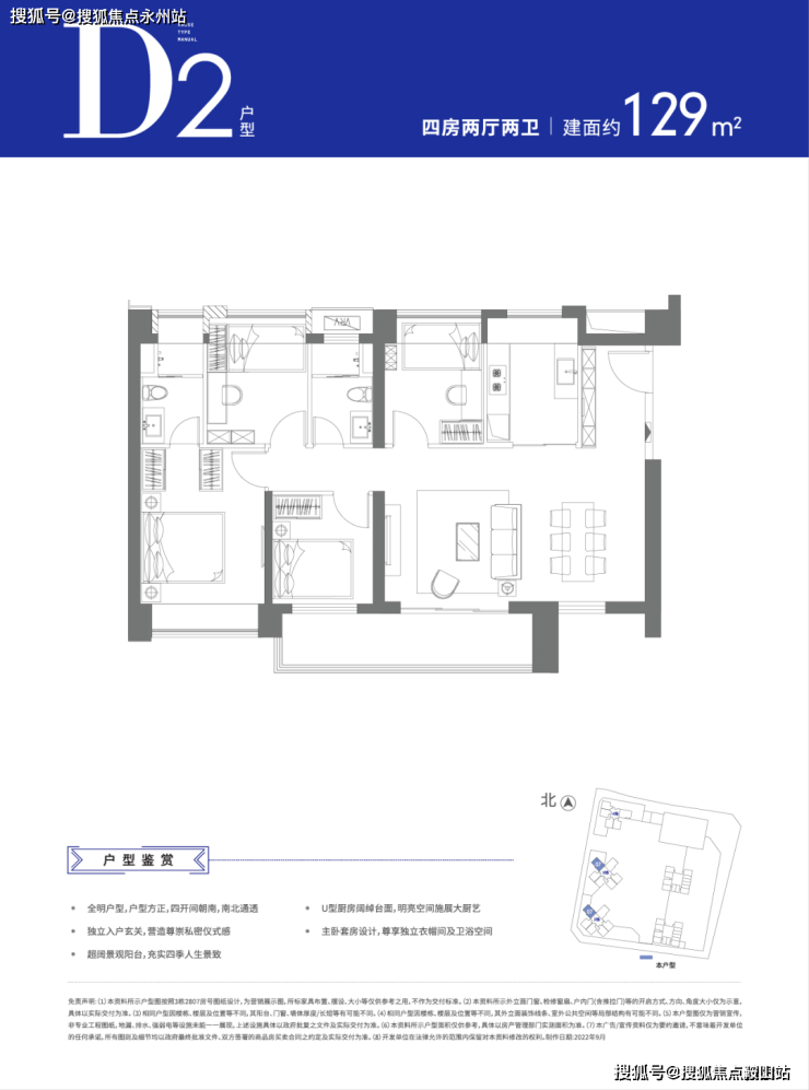 可售户型:103㎡三房两厅两卫、129㎡四房两厅两卫